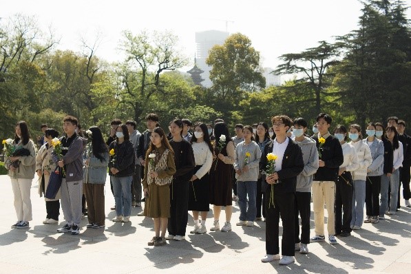 最后,大家来到了龙华烈士墓地,向革命英烈鞠躬缅怀。光学工程(学硕)研究生党支部党员代表张宏同志向大家讲述了革命先烈陈延年、陈乔年在龙华壮烈牺牲的英雄事迹,我们如今的幸福生活正是先烈们流血牺牲换来的,正如“延乔路”的尽头是“繁华大道”,同志们的爱国情怀再一次得到熏陶。